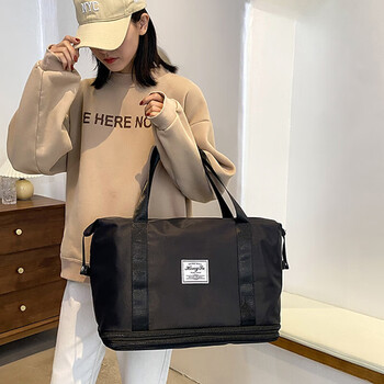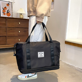 Landcase 旅行包女手提包运动健身游泳背包扩容短途旅行李包袋 5102黑色
