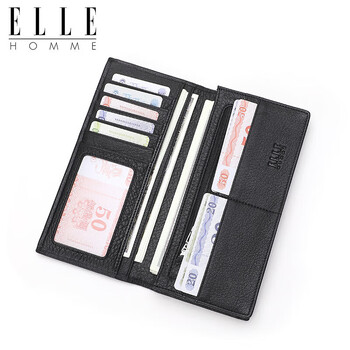 ELLE HOMME男士长款钱包 头层鹿皮多功能票夹 横款钱夹1312 生日礼物男