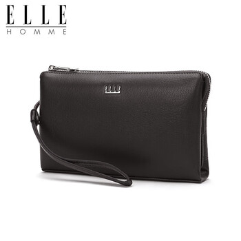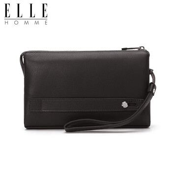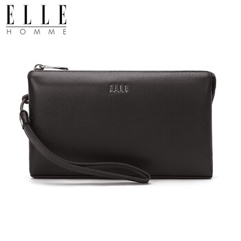 ELLE HOMME男士手包 头层鹿皮拉链钱包大容量手拿包时尚男包05451深啡色 生日礼物送男友