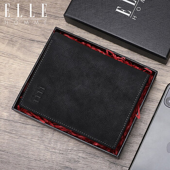 ELLE HOMME男士短款钱包 头层牛皮多功能票夹 横款钱夹01530 生日礼物男