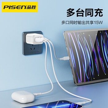 品胜 3C认证 多口充电器15W通用苹果iPhone17/16/15/14华为荣耀三星小米安卓手机ipad三口USB快充插头
