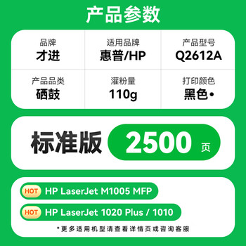 才进适用惠普m1005硒鼓hp1020墨盒2a 1020plus激光打印机一体机1010 laserjet m1005mfp 1018 q2612a m1319f