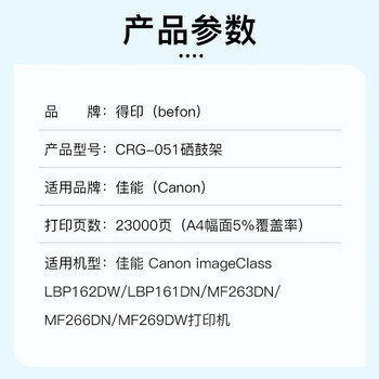 得印(befon)CRG-051硒鼓组件 适用佳能 iC MF269dw/266dn/263dn/LBP162DW/LBP161DN打印机硒鼓架 成像鼓