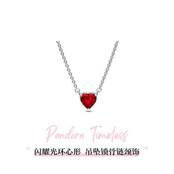潘多拉(PANDORA)烈焰之心项链颈饰耳钉套装女款生日礼物送女友