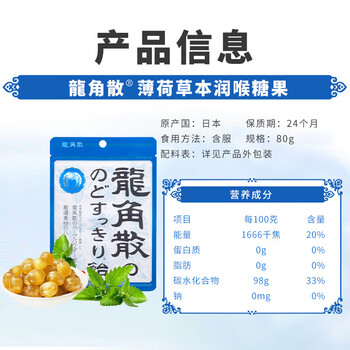 龙角散薄荷草本糖果 经典原味 80g 清凉舒爽 薄荷糖