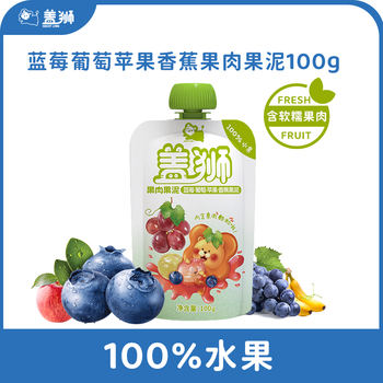 盖狮蓝莓葡萄苹果香蕉果肉果泥儿童零食袋装果汁出游便携装100g