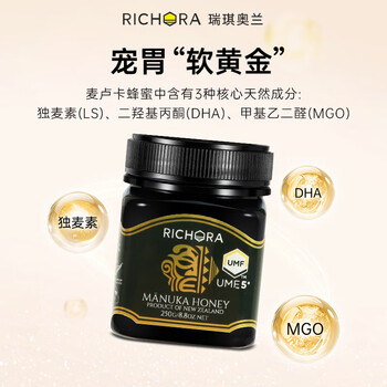 瑞琪奥兰(RICHORA)麦卢卡蜂蜜UMF5+250g*2瓶礼盒装 新西兰进口 送长辈父母节日礼物