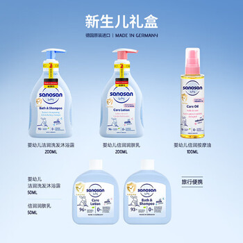 哈罗闪(sanosan)【0-3岁】新生儿洗发沐浴护肤礼盒套装5件装保湿滋润德国进口礼赠