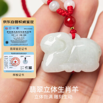 曼丽翠翡翠生肖羊吊坠玉坠立体十二生肖项链男女款礼物附证书