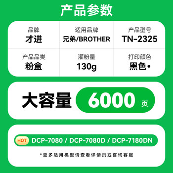 才进适用兄弟dcp7080d硒鼓7180dn mfc7380激光打印机墨盒tn2325粉盒hl2260d碳粉7480d一体机DR2350鼓架7880DN