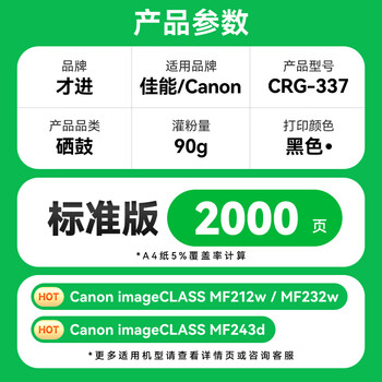 才进佳能MF211硒鼓MF215 MF243d MF249dw 210 CRG337碳粉盒LBP151dw 246dn 232w 236n打印机墨盒212w碳粉墨粉