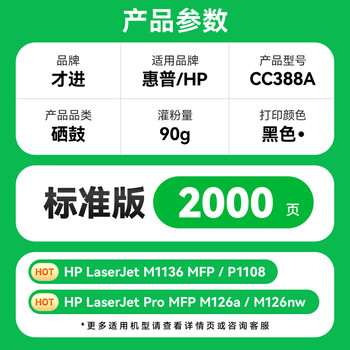 才进适用惠普m1136硒鼓M126a/nw/snw plus打印机p1108 P1106 cc388a M128fn/fp/fw p1007 p1008墨盒hp88a m1213nf