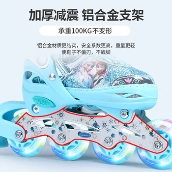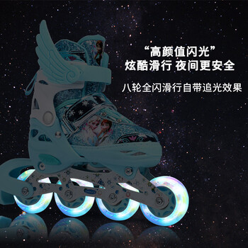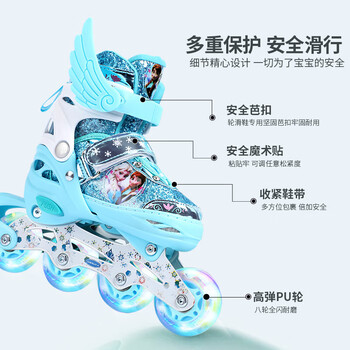 迪士尼轮滑鞋儿童溜冰鞋男童女童套装初学可调直排旱冰鞋八轮全闪大码
