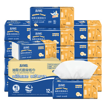五月花(May Flower)厨房抽纸 3层80抽*12包 大纸张吸油吸水强劲 整箱装