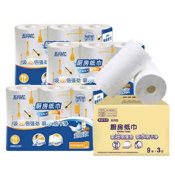 五月花(May Flower)厨房纸巾 3层120节*9卷 吸油吸水性强 可接触食品