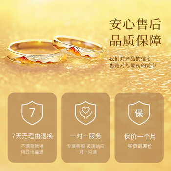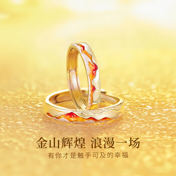 珍尚银中国黄金情侣对戒纯银戒指情侣一对求婚对戒情侣款送女友老婆S925