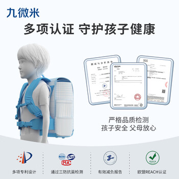 九微米(9UM)书包初中生男女安全气囊减负剑桥包中学生护脊背包U5176L格调黑