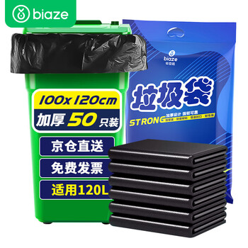 毕亚兹物业平口垃圾袋黑色100*120cm50只单面1.7丝特大号加厚