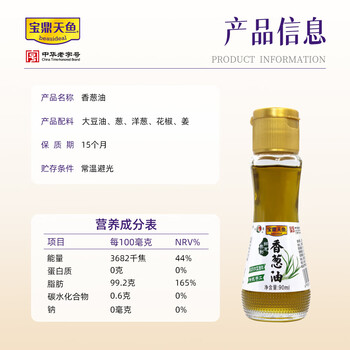 宝鼎天鱼上海香葱油90ml拌面酱面条专用酱炸酱面调料包拌面汁瓶装拌菜酱料