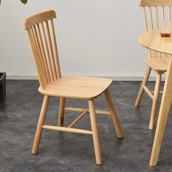 爱必居实木餐椅北欧椅现代简约家用靠背椅子温莎椅原木色两只装