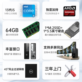 戴尔(DELL)OptiPlex7000SFF/7010SFF商用办公13代小型台式电脑主机i5-13500/16G/512G+1T/WIFI/定制