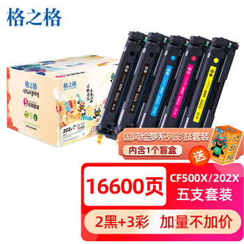 格之格202a硒鼓适用惠普m281fdw硒鼓 M254nw M281fdn M280nw M254dw硒鼓 cf500a超大容量易加粉 IP版5支套装