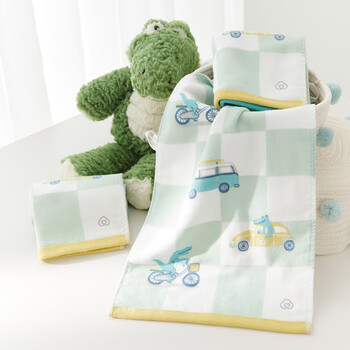 全棉时代毛巾儿童A类纱布无捻纱面巾纯棉洗脸家用柔软吸水旅行鳄鱼25*50cm
