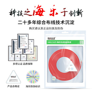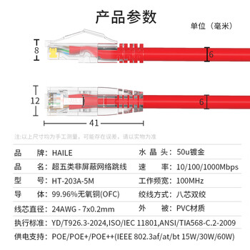海乐(Haile)超五类网线 HT-203A-5M 纯无氧铜7*0.2线芯 非屏蔽成品网络跳线 红色 5米