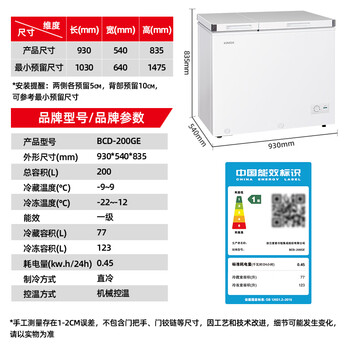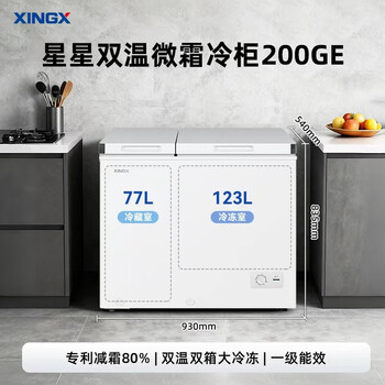 星星(XINGX)200L双温家用卧式冰柜 大容量保鲜卧式一级能效冰箱 冷藏冷冻双温双箱减霜冷柜 BCD-200GE