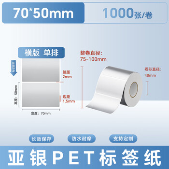远平条码 亚银PET不干胶标签 固定资产条码打印纸 横板70mm*50mm*1000张 支持定制