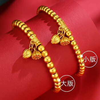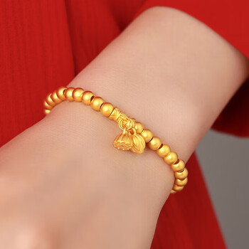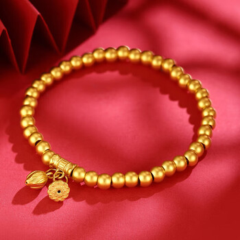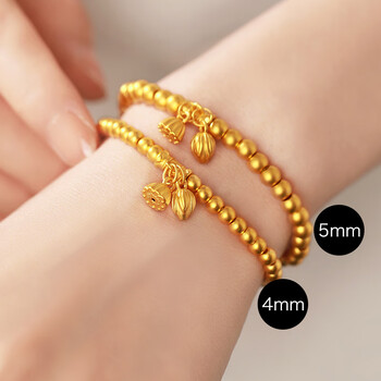 Lossot好运莲莲足金999黄金手链女3D硬金古法金珠转运珠手镯生日礼物