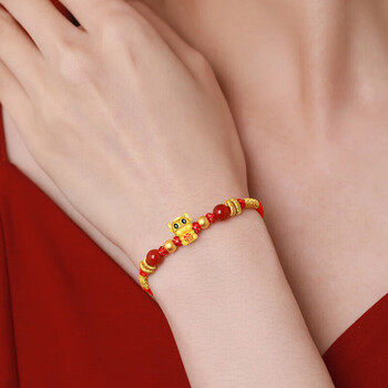 Lossot生日礼物本命年十二生肖牛足金福牛金珠黄金转运珠手链金牛红绳