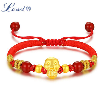 Lossot生日礼物本命年十二生肖蛇足金福蛇金珠黄金转运珠手链金蛇红绳