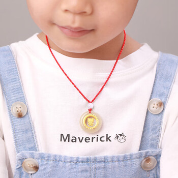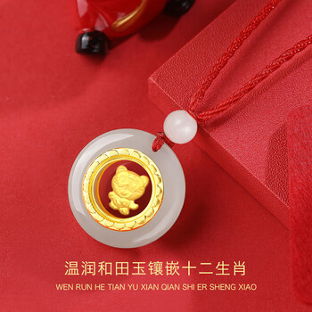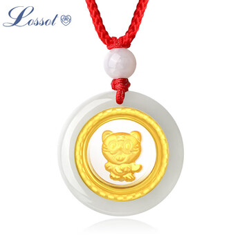 Lossot十二生肖虎金镶玉吊坠镶嵌和田玉平安扣项链宝宝长命锁满月礼物