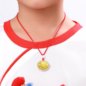 Lossot女孩男孩生日礼物如意福金镶玉吊坠项链宝宝福锁百天周岁出生礼物