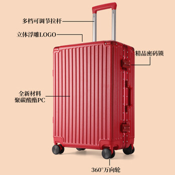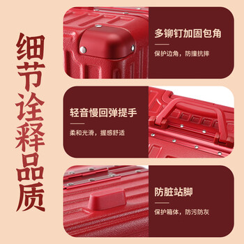 皮尔卡丹行李箱红色喜庆新娘陪嫁24英寸铝框拉杆箱婚庆结婚大容量旅行箱女