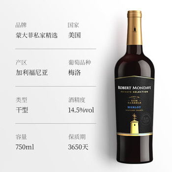 蒙大菲(ROBERT MONDAVI)私家精选朗姆桶陈酿梅洛红葡萄酒 750ml 美国 热门商品