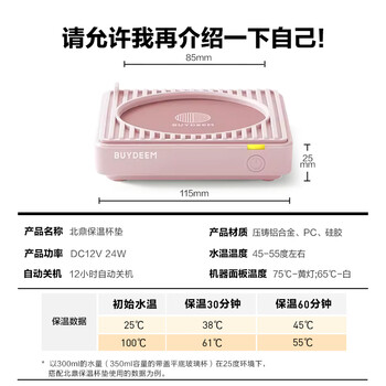 北鼎(Buydeem)保温杯垫圈 电热杯垫水杯恒温加热器恒温暖杯器办公室茶杯托暖奶器隔热保温垫 OA2001猪猪粉
