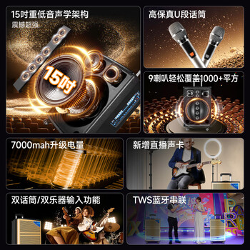 先科户外广场舞拉杆便携音响超大音量大功率移动蓝牙音箱k歌15吋重低音9喇叭单元覆盖800平带话筒WD-15