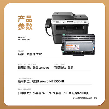 拓普达适用联想m7655dhf硒鼓lenovo m7655dhf激光打印机墨盒易加粉晒鼓西鼓息鼓一体机碳粉墨粉粉仓