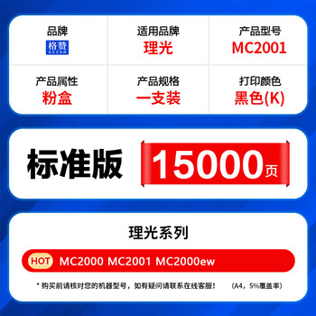 格赞M C2001粉盒黑色 适用理光MC2000粉盒Ricoh MC2001碳粉MC2000ew/C/L/SP MC2501打印机复印机墨盒墨粉硒鼓