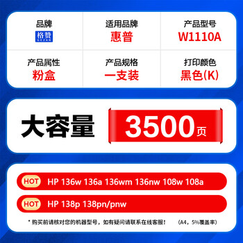 格赞 适用惠普136w硒鼓110A硒鼓HP 136a 136wm 136nw 108w 108a 138p 138pn/pnw W1110A粉盒墨盒大容量带芯片