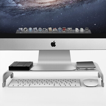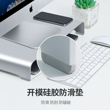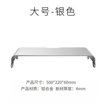 鹿为 显示器增高架底座笔记本电脑支架铝合金散热支架键盘收纳置物架 50*22*6cm大号6CM高-银色 ZG1031