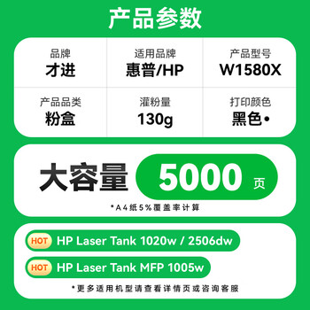 才进适用惠普158X粉盒W1580X闪充墨盒Tank MFP 2606sdw碳粉2606sdn 2606dn 2506dw墨粉1005w 1020w打印机硒鼓