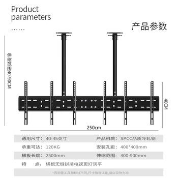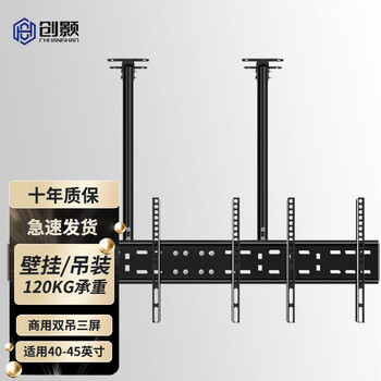 创颢 电视吊架双杆3屏(40-45)多屏吊架天花板吊顶支架显示器伸缩顶壁挂架双面多屏吊架双杆三屏吊架