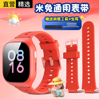 轩邑 适用小米米兔儿童电话手表表带通用4c/2s/5c/4/4x/6c米兔儿童腕带防水防汗可拆卸硅胶男女款 红色