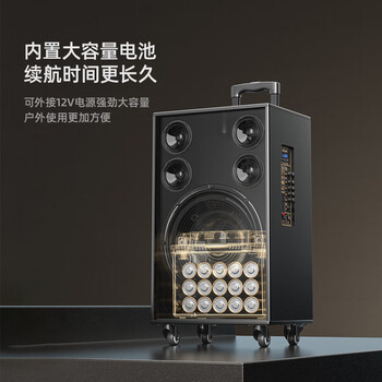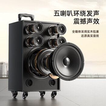 新科V50广场舞音响户外大音量拉杆音箱五喇叭木质箱体大功率家用K歌移动摆摊低音炮 10吋双咪