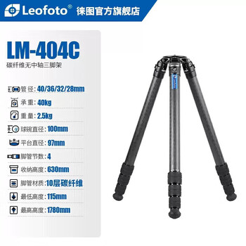 徕图(Leofoto)三脚架 轻量便携观鸟长焦摄影摄像碳纤维无中轴三脚架 LM-404C(单脚架)