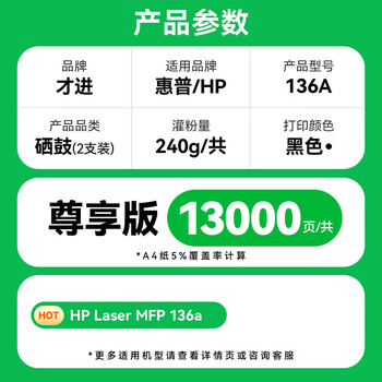 才进适用惠普136a硒鼓HP Laser MFP 136a激光打印机墨盒4ZB85A粉盒带芯片墨粉盒 hp136a复印一体机大容量晒鼓