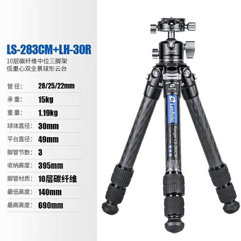 徕图三脚架 碳纤维轻便型低位拍摄摄影摄像微单单反相机专业星空三脚架云台套装 LS-283CM+LH-30R